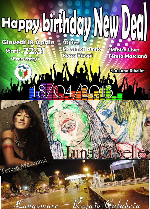 ★HAPPY BIRTHDAY NEW DEAL★ L'Associazione_Studentesca_Universitaria_New_Deal è_lieta_di_invitarvi_al_suo_quinto_Compleanno *****MUSICA LIVE****** ►Teresa Masciana'