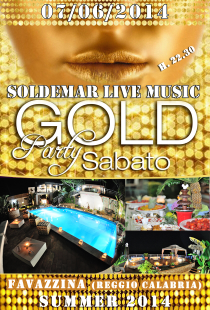 *Start Sabato* *7 Giugno 2014 - h. 22:30* **Villa Valentina Gold Party** Favazzina (Rc) Welcome - Buffet dolci & frutta ► Soldemar Live Music ► Gold Party