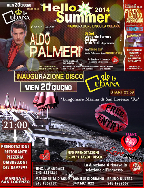 | 20/06/2014 - La Cubana *HelloSummer2014 *SpecialGuest*AldoPalmeri* Dj Set Ferraro" Foto Online |