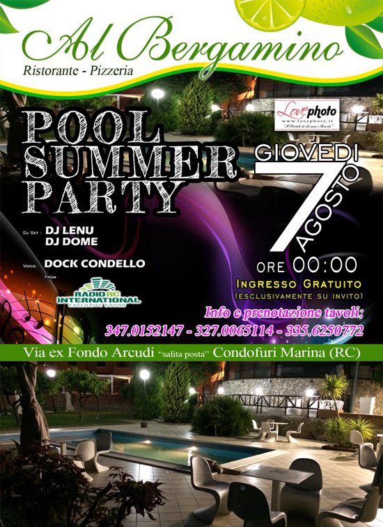 **07/08/2014*** ****Al Bergamino**** Ristorante - Pizzeria - Event Via ex Fondo Arcudi "salita Posta" Condofuri Marina (Rc) Presenta: *Pool Summer Party*