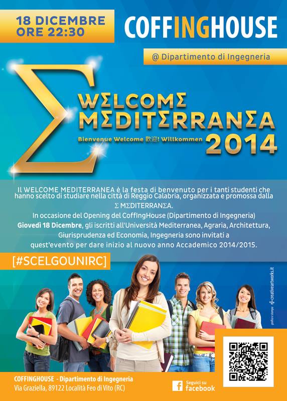 #SCELGOUNIRC COFFingHouse Dipartimento Di Ingegneria Events Facebook: Il WΣLCOMΣ MΣDITΣRRANΣA è la festa di benvenuto per i tanti studenti che hanno scelto di studiare nella città di Reggio Calabria, organizzata e promossa dalla Σ MΣDITΣRRANΣA.