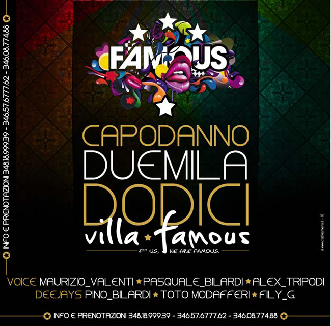Per festeggiare il 2012 nel migliore dei modi scegli VILLA FAMOUS. Inaugura il nuovo anno in una raffinata location situata al centro della tua città, si dispone in tre super aree: